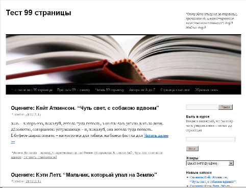 В этом блоге регулярно публикуются 99 страницы как отечественных, так и зарубежных книжных новинок, а также произведений классиков литературы. Более того, пройти тест может каждый писатель. Для этого нужно лишь прислать 99-ую страницу любого своего опубликованного произведения или рукописи, и после обязательной модерации она будет представлена читателям для ознакомления и оценки. Какая красивая библиотечная идея!